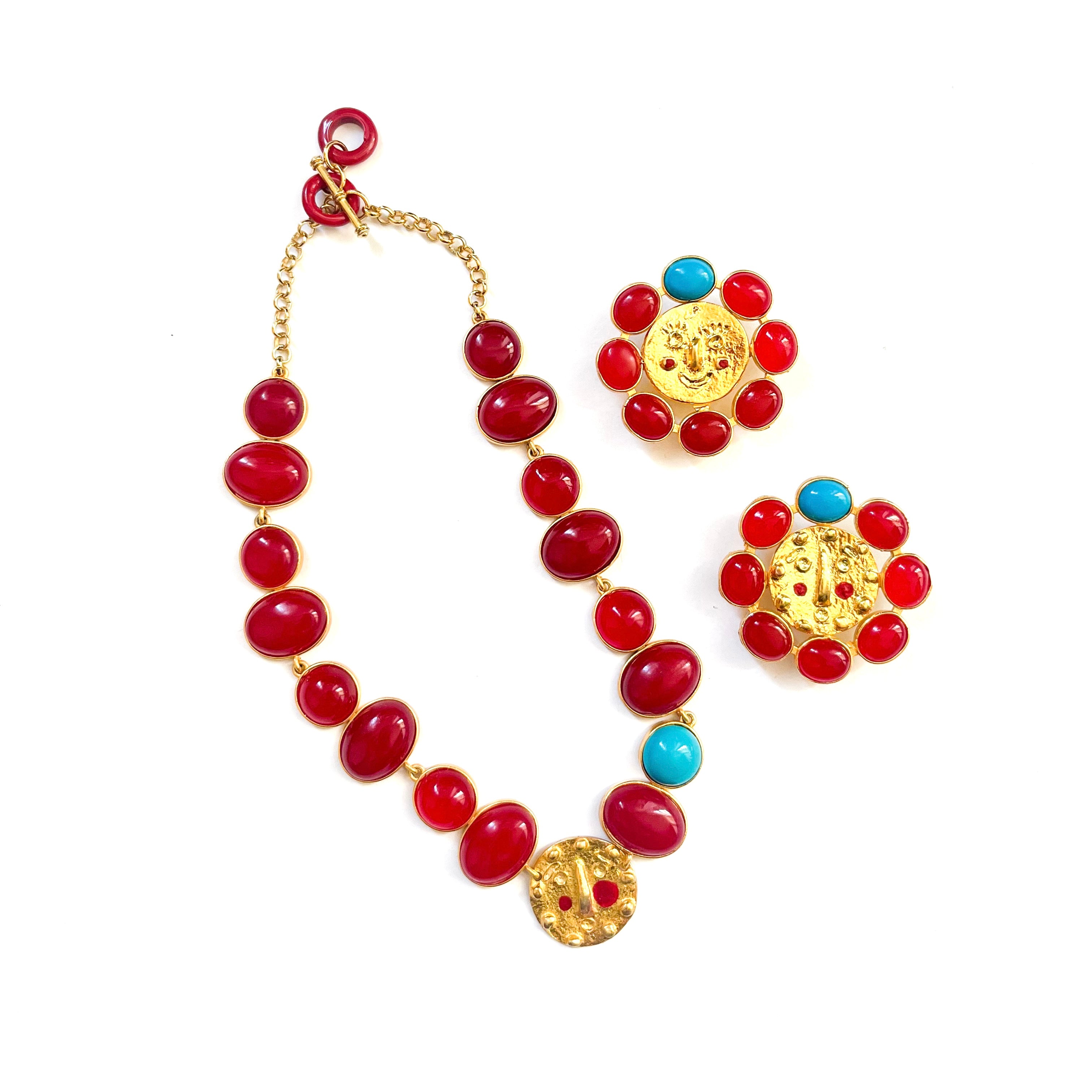 “You Are My Precious!” Küpeleri altın kaplama pirinçtir. Dude’lar kırmızı jade ve turkuaz taşları ile çevrelenmiştir. Ağırlıkları yaklaşık 24 gr., uzunlukları 4,5 cm'dir