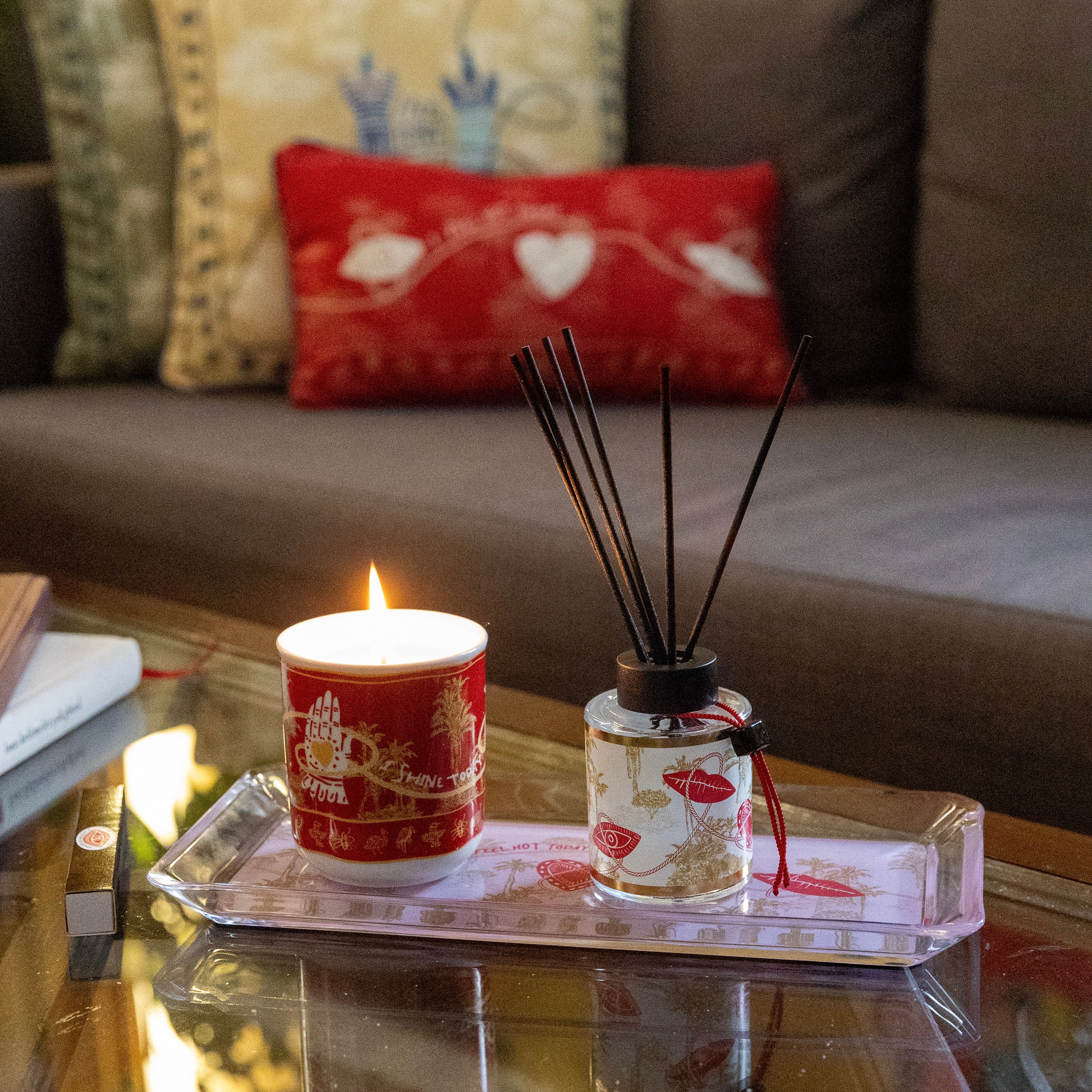 The About Today Gift Box includes a candle and home fragrance set, available in two colors and scents: “I Feel Hot Today” (white & gold) with notes of pomegranate, muguet, white musk, and patchouli & “I Shine Today” (red & gold) with notes of jasmine, saffron, cedarwood, amber, and musk. The beautifully designed box makes it a perfect gift for a loved one or a special treat for yourself.