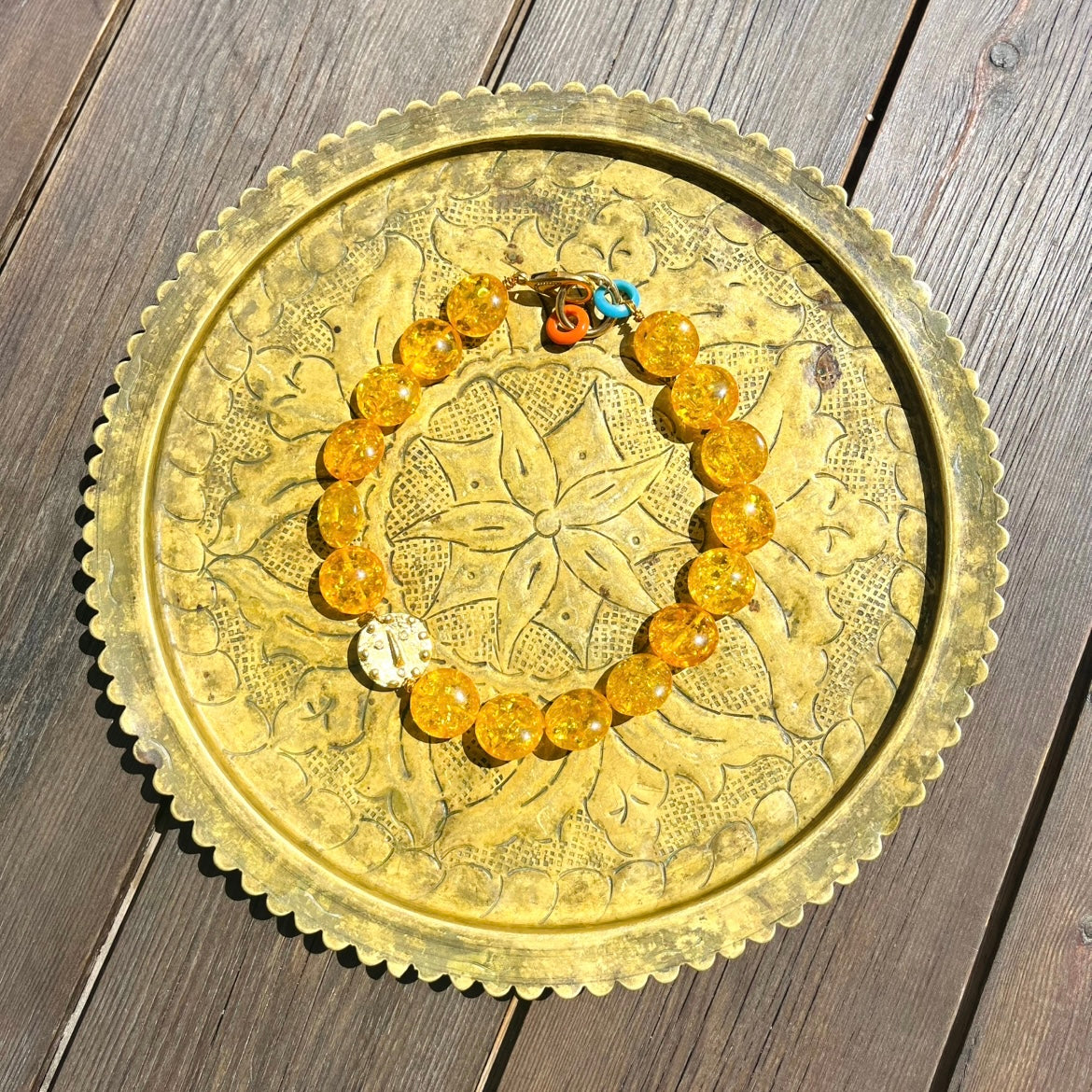 Mini Shiny Dude Necklace from the Life of Dudes collection features a mini Dude charm and a gold-plated brass closure. Beads are acrylic resin. The adjustable necklace length is 45–47 cm.