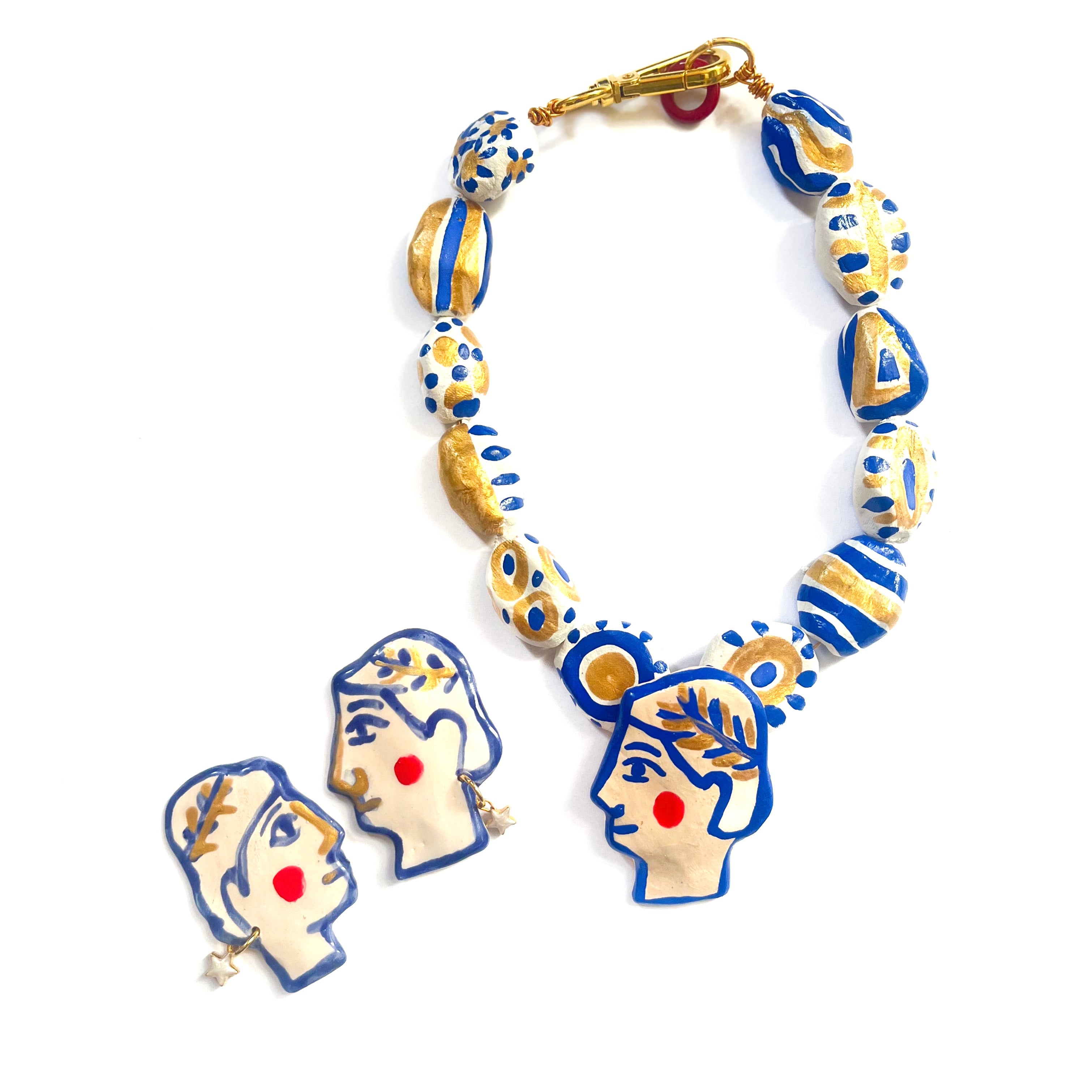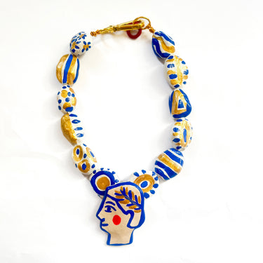 Büyüleyici bir Yunan Tanrısı… Mavi ve altın boncuklarla çevrili; her güne mitik bir çekicilik katmak için tasarlandı!