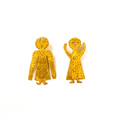Küpeler altın kaplama pirinçtir ve uzunlukları 10 cm, ağırlıkları 20 gr.